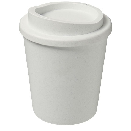Doppelwandiger, kompakter Isolierbecher mit aufschraubbarem Deckel. Passt unter die meisten Kaffeemaschinen. Das Fassungsvermögen beträgt 250 ml. Hergestellt aus 100 % recyceltem Material. Die Schattierungen von Schwarz oder Weiß können variieren, und die weiße Variante hat aufgrund der Beschaffenheit des recycelten Materials einen strukturierten Farbeffekt. Hergestellt in UK. Verpackt in einem kompostierbaren Beutel. BPA-frei und spülmaschinenfest.