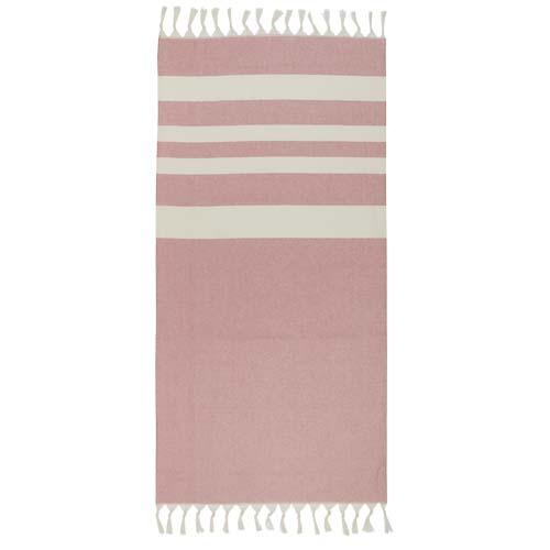 Das Anders Hammamtuch garantiert mit seinen großzügigen Maßen (147 × 75,5 cm) luxuriösen Komfort und sorgt für eine großzügige Abdeckung, egal ob Sie am Pool faulenzen oder einen Tag am Strand verbringen. Das Handtuch hat elegante Quasten an beiden Enden und besteht aus 30 % Baumwolle, 35 % GRS-zertifizierter Recyclingbaumwolle und 35 % GRS-zertifiziertem Recyclingpolyester, 180 g/m².