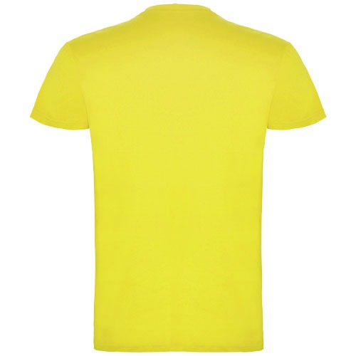 Kurzärmeliges T-Shirt mit doppellagigem Rundhalsausschnitt aus Elasthan, hergestellt aus mit Seitennähten. Verstärkte und verdeckte Nähte am Kragen. Herausnehmbares Etikett. Das Modell ist 120 cm groß und trägt Größe 5/6.