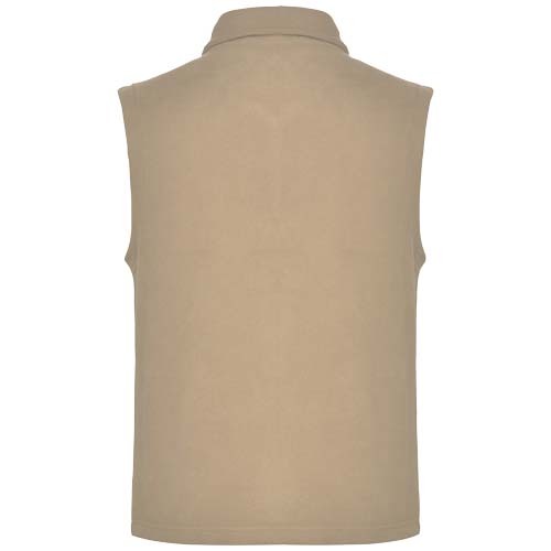 Fleeceweste mit Polokragen und passendem Reißverschluss. Seitentaschen mit passendem Reißverschluss. Herausnehmbares Etikett. Das Modell ist 185 cm groß und trägt Größe M.