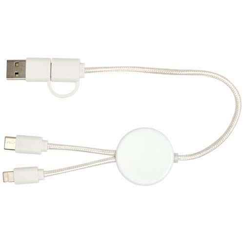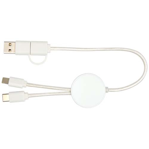 Das Citala 27 W 5-in-1 Daten- und Schnellladekabel ist aus recyceltem Kunststoff hergestellt. Das Kabel verfügt über einen USB-A- und einen Typ-C-Eingang sowie einen kombinierten Typ-C- und Lightning/Micro-USB-Ausgang. USB-A zu USB-C liefert max. 27 W Ausgangsleistung, alle anderen Anschlüsse max. 15 W. Kompatibel mit CarPlay und Android Auto. Ob zu Hause, im Büro oder unterwegs, das Citala Kabel bietet Leistung und Stil in einem kompakten Paket. Länge des Kabels: 30 cm.