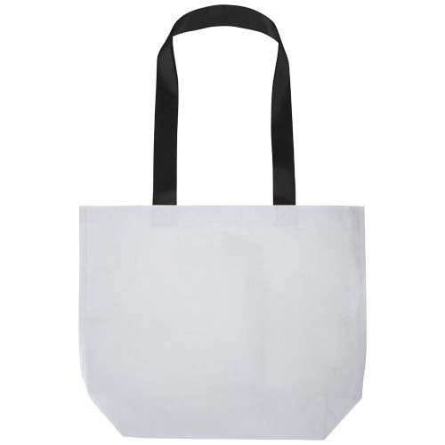 Die Duo Tragetasche mit doppelt laminiertem Boden besteht aus 150 g/m2 GRS zertifiziertem RPET mit doppelter Laminierung und bietet verbesserte Haltbarkeit und Wasserbeständigkeit, wenn es darauf ankommt. Sie verfügt über ein geräumiges offenes Hauptfach, robuste, verstärkte Griffe und einen breiten Boden für zusätzliches Fassungsvermögen. Sie ist für eine Traglast von bis zu 10 kg ausgelegt und stellt eine stilvolle und zuverlässige Option für den täglichen Bedarf, Messen oder Werbeveranstaltungen dar. Fassungsvermögen: 18 Liter.