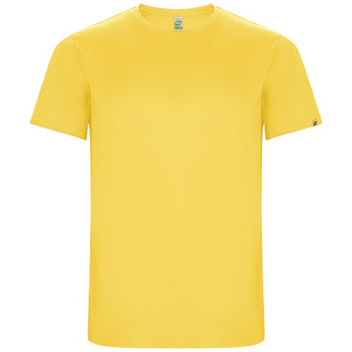 Funktions-T-Shirt aus recyceltem Polyester CONTROL DRY. Rundhalsausschnitt mit farblich abgesetzten Nähten. ECO-Logo-Etikett am Ärmel. Verpackung aus Recyclingmaterial. Herausnehmbares ECO-Etikett. Verpackung aus Recyclingmaterial. Technisches Gewebe. Das Modell ist 115 cm groß und trägt Größe 5/6.
