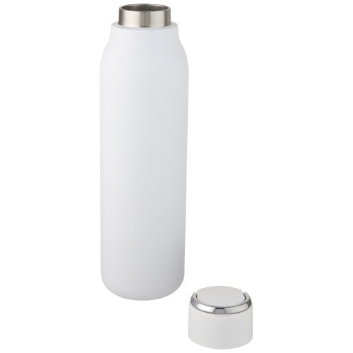 Die Marka-Flasche hat eine Vakuumkonstruktion aus Edelstahl mit Kupferisolierung, die Getränke mehrere Stunden lang heiß oder kalt hält. Die isolierte Konstruktion aus 18/8-Edelstahl verhindert die Bildung von Kondenswasser an der Außenseite der Flasche, und die trendige Pulverbeschichtung macht sie besonders haltbar. Außerdem verfügt sie über einen schraubbaren, auslaufsicheren Deckel und eine haltbare Handschlaufe aus Zinklegierung. BPA-frei, geprüft und zugelassen nach dem deutschen Lebensmittelrecht (LFGB). Auf Phthalate geprüft und zugelassen gemäß den REACH-Vorschriften. Passend für die meisten gängigen Auto-Getränkehalterungen. Das Fassungsvermögen beträgt 600 ml. Handwäsche empfohlen. Verpackt in einer Geschenkbox aus Recyclingkarton.