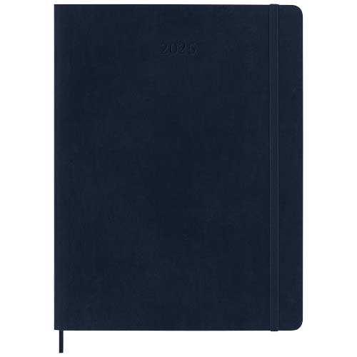 Der von Januar bis Dezember 2026 datierte Moleskine XL Softcover Wochenplaner für 12 Monate zeigt die ganze Woche auf einen Blick, bietet aber auch Jahres- und Monatsübersichtsseiten für einen breiteren Jahresüberblick, gefolgt von Seiten für Reiseplanung, Ideen und Ziele. Auf der einen Seite sind die Wochentage dargestellt, gegenüber befindet sich eine linierte Seite, auf der Aufgaben und Notizen eingetragen werden können. Er enthält elfenbeinfarbenes, säurefreies Papier, einen schwarzen, elastischen Verschluss, ein Seitenband, eine farblich abgestimmte, erweiterbare Innentasche und Aufkleber zur persönlichen Gestaltung sowie Jahresaufkleber für den Buchrücken.
