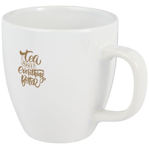 Die Moni Keramiktasse hat eine trendige, glänzende Oberfläche, die ihr einen eleganten Touch verleiht. Sie verfügt über einen großen Griff, der einen bequemen und stabilen Halt bietet. Die Tasse ist so vielseitig, dass sie sowohl für heiße als auch für kalte Getränke verwendet werden kann, so dass Sie Kaffee, Tee, Suppe und mehr genießen können. Das Fassungsvermögen beträgt 430 ml. Spülmaschinenfest einschließlich Aufdruck für die allermeisten Druckmethoden. Verpackt in einer Geschenkbox aus Recyclingkarton.