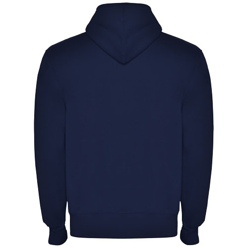 Sweatjacke mit Kapuze, hohem Halsausschnitt und durchgehendem Reißverschluss. Gerippte Details an Kapuze und Taschenpaspeln. Tasche im Känguru-Stil. 2×2 Rippenstrick an Ärmeln und Taille. Herausnehmbares Etikett. Das Modell ist 184 cm groß und trägt Größe L.