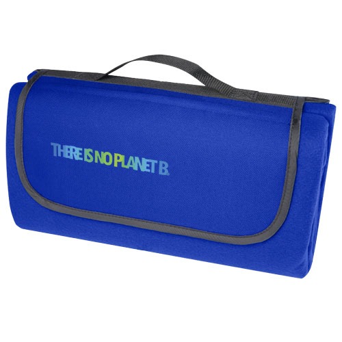 Wasserabweisende Picknickdecke aus recyceltem PET Kunststoff (140 g/m2). Einmal gefaltet und gesichert, lässt sich die Decke mit dem mitgelieferten Tragegriff leicht verstauen und transportieren.