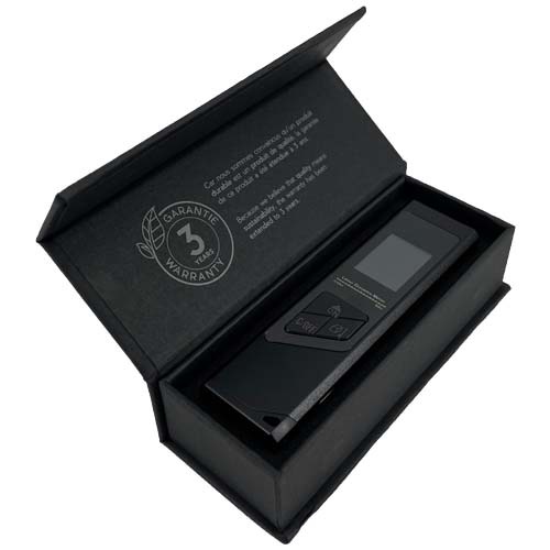 Der Mini-Laserentfernungsmesser bietet eine einfachere, schnellere und genauere Möglichkeit zur Messung von Flächen und Volumina und verfügt außerdem über eine Pythagoras-Funktion. Mit seiner Laser-Präzisionstechnologie und dem Echtzeit-Messmodus liefert er zuverlässige Messungen bis zu 40 Metern. Der Entfernungsmesser verwendet einen energiesparenden 200 mAh Li-Ionen-Akku als Stromversorgung und kann nach einer vollen Aufladung 2000 Entfernungen messen. Das Display ist hintergrundbeleuchtet, sodass Sie es auch in dunklen Umgebungen leicht ablesen können. Größe 9 × 2,4 × 1,1 cm. Verpackt in einer Geschenkbox aus recyceltem Papier (10,2 × 4,2 × 3 cm) mit Magnetverschluss. Inklusive 3 Jahre Garantie.