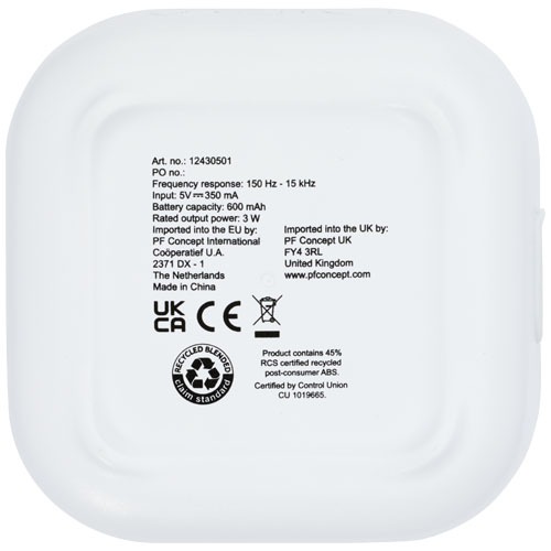 RCS-recycelter 3W Bluetooth® Lautsprecher, der Musik, Podcasts usw. von jedem Bluetooth® fähigen Gerät abspielt und damit ein idealer Begleiter für jede Gelegenheit ist. Der Lautsprecher verfügt über eine integrierte Musiksteuerung und ein Mikrofon für Telefonate und Online-Meetings. Genießen Sie 3 bis 4 Stunden Musik bei maximaler Lautstärke. Die Ladezeit beträgt 3 Stunden. Bluetooth® 5.3 mit einer Reichweite von ca. 10 Metern. Wird mit einem Benutzerhandbuch und einem 30 cm langen USB-A-auf-Typ-C-Ladekabel geliefert und in ist einer Box aus 100 % recyceltem Karton aus nachhaltigen Quellen verpackt.
