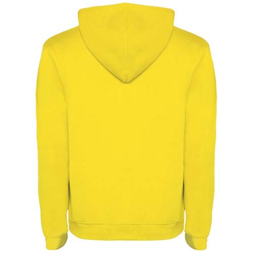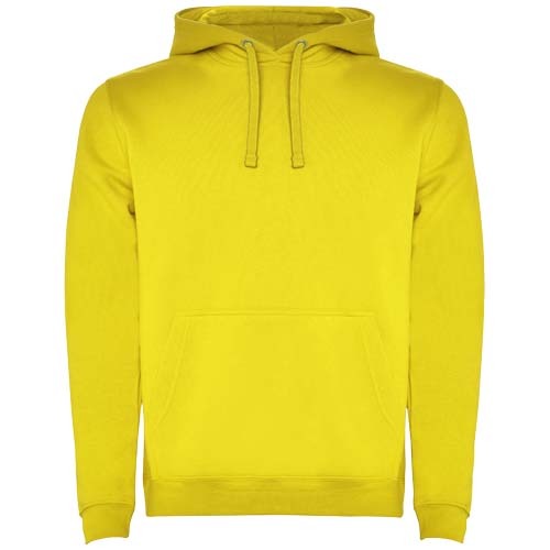 Kapuzenpullover mit doppeltem Stoff, verstellbarem Kordelzug in Kontrastfarbe, verstärkten und verdeckten Nähten am Kragen und Kängurutasche. Verfügbar in Zweifarbig und Uni. Elastischer 1×1-Rippstrick an Ärmeln und Bund. Abnehmbares Etikett. Das Modell ist 185 cm groß und trägt Größe M.